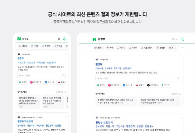 공식 사이트 검색 결과 중 최신 콘텐츠 영역을 포함한 일부 결과를 아래와 같이 2가지 방향에 따라 개편합니다.
