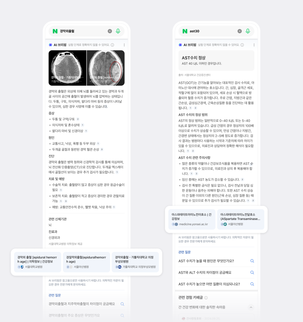 3차 병원, 상급종합병원, 학회 등에서 제공하는 공신력 있는 자료를 AI가 핵심만 요약하여 제공해 드립니다. 여러 사이트와 소셜 미디어에서 헤맬 필요 없이, 풍부하고 믿을 수 있는 정보를 한곳에서 간편하게 확인하세요.