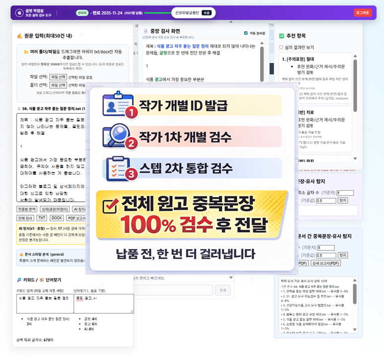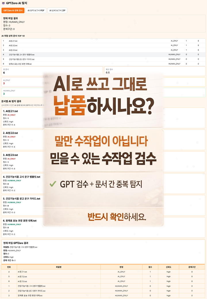 " AI탐지 "와 " 문서 간 중복문장검사" 까지