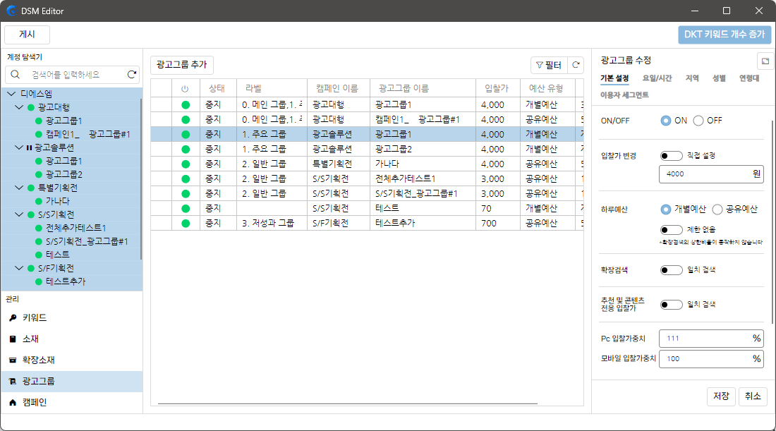 네이버 검색광고 대량관리 솔루션입니다. 디에스엠 Tue, 26 Au 조회 124 네이버 검색광고 대량관리 솔루션입니다.간단한 회원가입(개인정보 없음)으로 무료 솔루션 활용이 가능합니다. 다운로드 및 매뉴얼 링크DSM Manual | All Documents